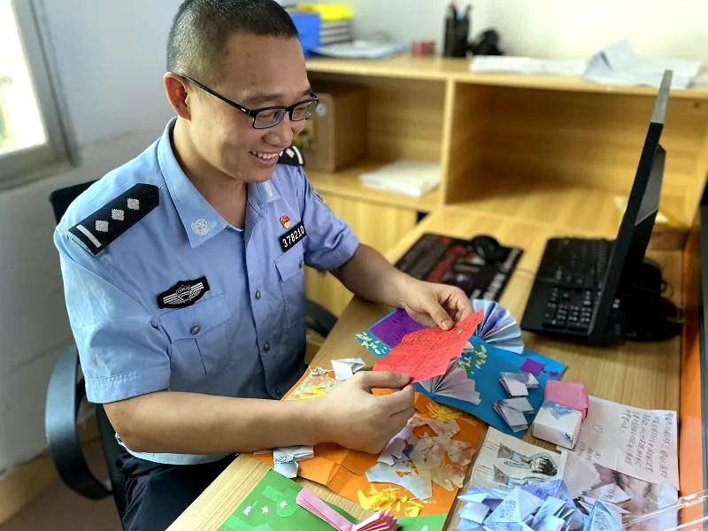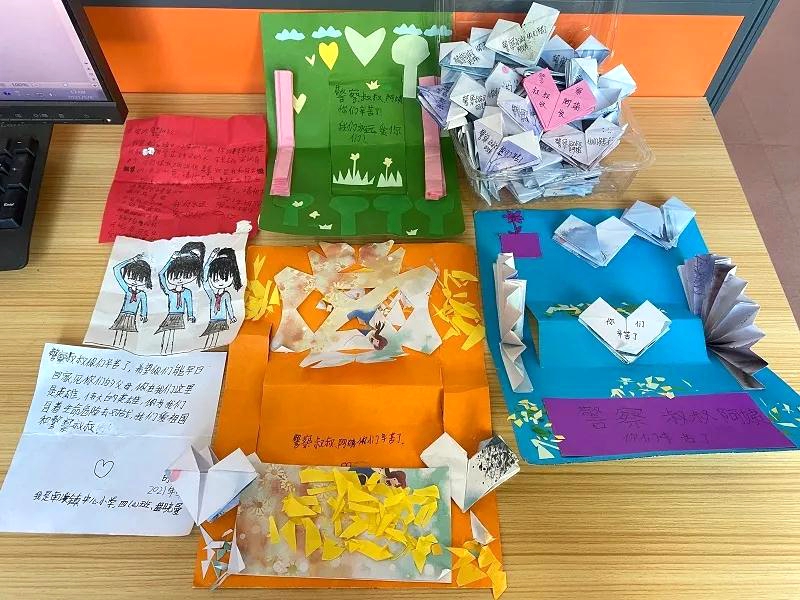 一张张爱心折纸,一封封贺卡上写满了南溪镇中心小学学生们对南溪边境派出所警察叔叔、阿姨的尊敬和向往,让民警们收获了满满的感动。