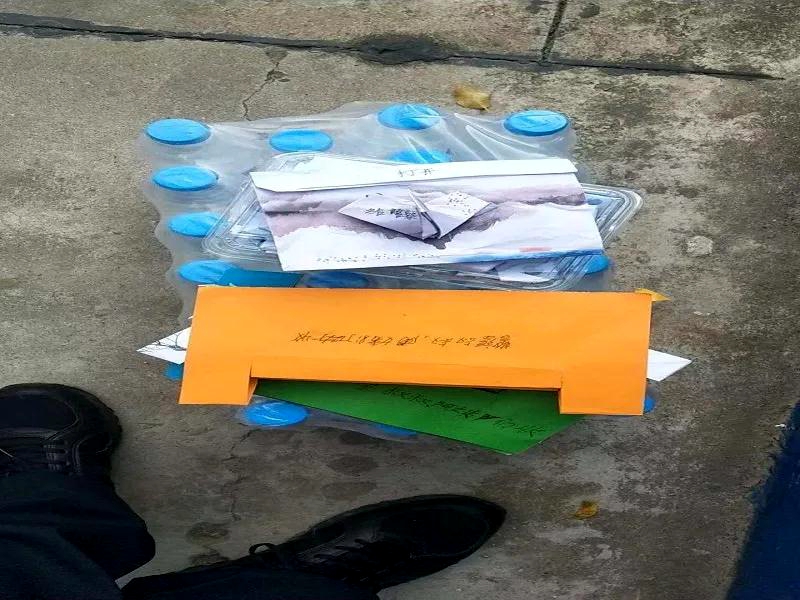 5月8日下午,河口县南溪边境派出所营区门口冒出一份“神秘礼物”——四位小学生将一箱矿泉水、贺卡和折纸放到营区门口,信封上写着“警察叔叔、阿姨收。”