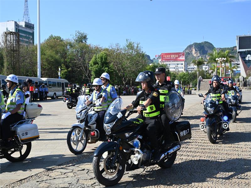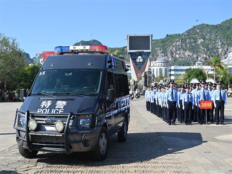 5月11日,文山州公安机关建党100周年安保维稳暨社会治安巡逻防控工作启动仪式在七花广场举行,吹响了决战决胜建党100周年安保维稳攻坚战的冲锋号角。副州长、州公安局党委书记、局长彭山出席启动仪式并宣布建党100周年安保维稳暨社会治安巡逻防控工作正式启动。州公安局党委副书记、常务副局长董建文主持启动仪式。