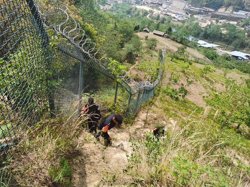 片马边境派出所副所长李俊介绍,在靠近下片马村的边境线上已修建了部分物理防护隔离栏,但派出所还是在隔离栏旁边设置了执勤点,24小时轮流值守和巡逻,严防发生违法出入境。