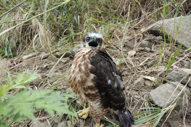 经民警仔细检查辨认,这是一只疑似苍鹰雏鸟,其身体未发现明显外伤,估计是由于没有得到正常进食,体力不支,加之又是雨天其翅膀淋了雨以后导致不能正常飞行。随后,民警给该雏鸟补给食物,经观察发现其已恢复体力,综合评估能适应野外的生活,便将其带到附近的林区进行放归自然。(泸水市公安局)