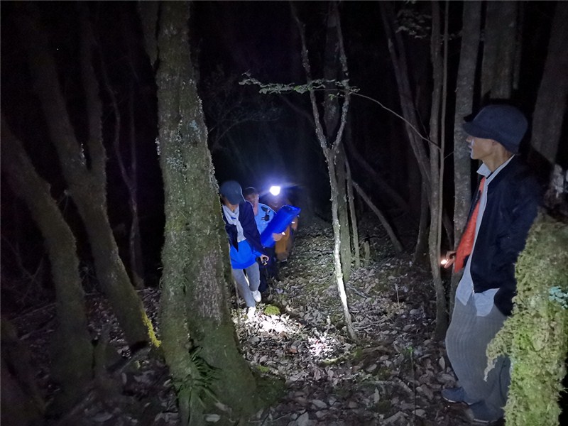 “刚刚他们发信息告诉我,他们已经听到警车的警笛了,好像应该是在哪个方向,因为我们都是外地游客,所以他们确定不了位置。”应该就是细台坡方向,但他们听到的声音跟我们的距离很远,那个位置是可能是大理地界了,可能我们走到那里都要深夜了,事不宜迟大家根据方向保持好距离,分组行动。” 民警跟游客交流确定大体方位后,将参与的各相关部门人员进行分组分线分片,并由熟悉地形的防火队员、安全巡防员带队拉网式寻找。在寻找过程中,搜救人员不停用携带的警用小喇叭采用鸣笛和利用摇晃手电筒方式进行搜救寻找。