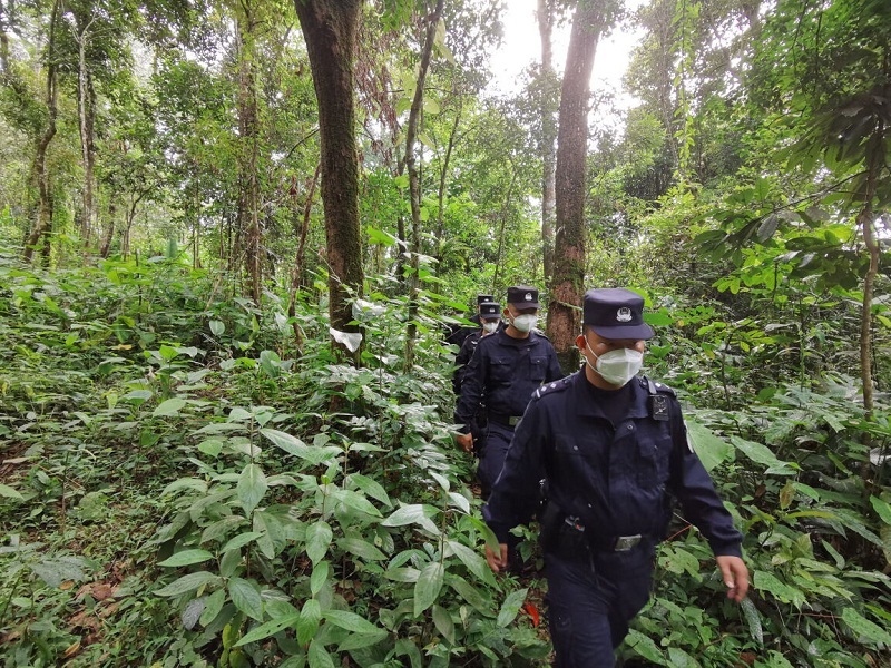 然而最危险的还是经常会遇到各种毒蛇,有五步蛇、眼镜蛇、竹叶青等等。最害怕的是竹叶青,它能完美的把自己隐藏在树枝上、树叶下、藤蔓间,通过自身的保护色和自然融为一体,让人防不胜防。民警们常说,他们有两个生死兄弟,一个是身边的战友,一个就是包里的蛇药。