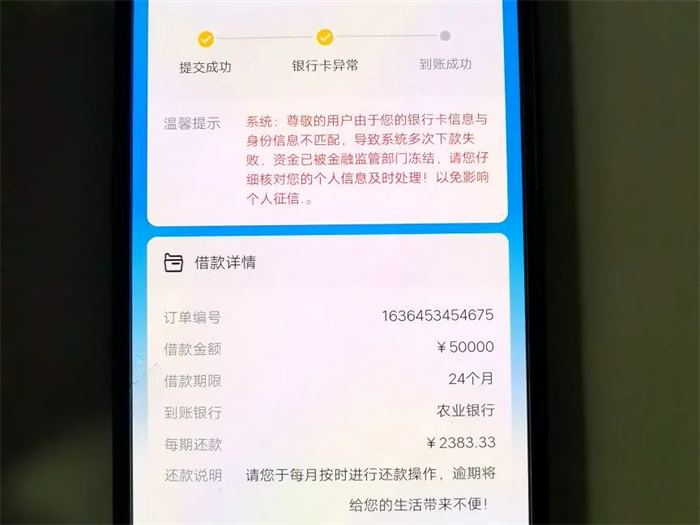 客服告知陈女士银行卡号填写错误,账户被冻结,需要缴纳贷款金额的20%即1万元“认证金”,认证成功后,将把6万元的贷款和认证金转入陈女士账户。