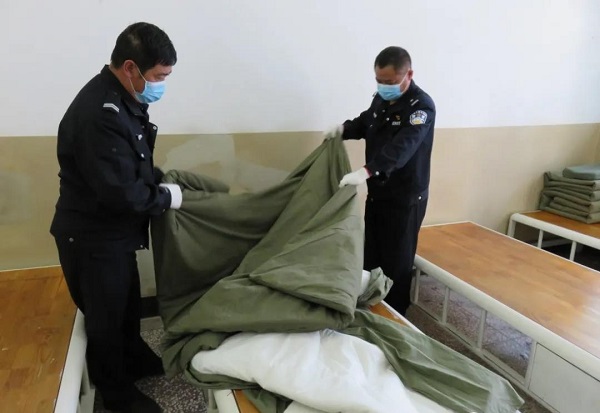 外面很冷,身体是暖和的,走一万步不是问题。午夜,是一天中最冷、风最大的时候,带班副所长韩正国和值班辅警桂颂雯正走在拘区通道上,每隔30分钟他们就要去巡视一次,认真地观察拘室情况,“4号拘室3号床位不能用被子捂着头,2号拘室5床还不睡觉,在想什么…”,“外面很冷,但随时在走动着,身体是暖和的,也不感觉冷,我今天走了一万步”,桂颂雯说。一个班值下来,一天一万步根本不在话下,因为安全就在他们的脚下,安全也是所长孙玉明最大的牵挂。
