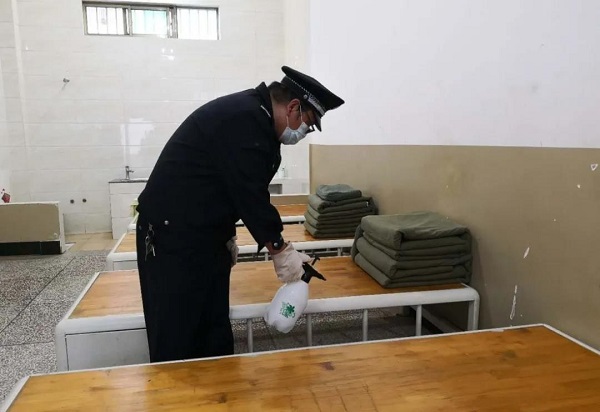 让他们多休息一会儿,这些事我多做做。趁大家中午午休时,拘留所辅警邵洪全主动背起了消毒喷雾器,开始了一天中的第二次全所消毒清洁。自疫情发生以来,拘留所坚持每天两次对拘室、拘区进行消毒,他说“我文化水平不高、业务不强,这些简单直接的工作我多做做,让其他同志有时间进行其他业务工作,中午我少休息一会,让其他同事多休息一下”,拘留所每天上午、中午都要进行对拘所消毒,他说我们一定要杀死病菌,坚决守好拘所安全,不让疫情传播到拘所。