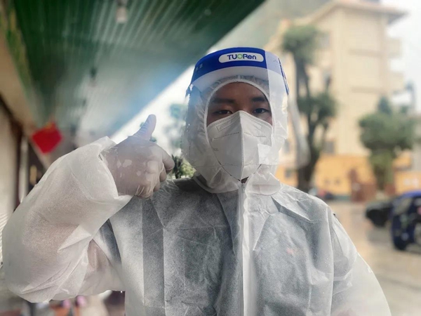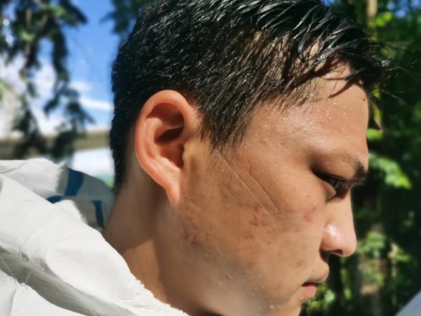 工作间隙,他们就地稍作休整。三伏天的瑞丽,地表气温超过40℃,穿上厚实的防护装备,几个小时手指就会被汗水泡得发白。于磊磊说,为了人民群众的生命安全,我们付出再多,都是值得的。