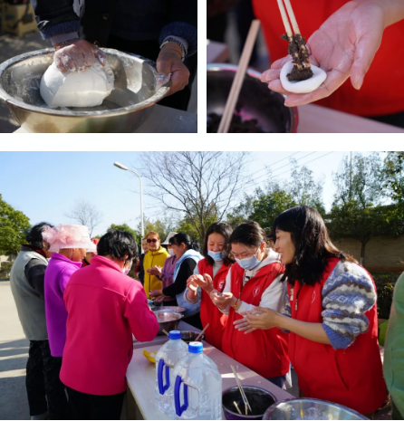 活动现象,大家将桌子,炉子等一系列的工具摆放好,该揉面的揉面,该拌馅的拌馅,该包汤圆的包汤圆……个个忙得不可开交。