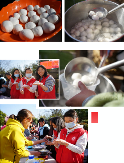 在大家的共同努力下,一个个雪白的汤圆出锅后,由志愿者们依次送到社区居民手中,大家围坐在一起,共同分享甜滋滋的暖心汤圆,每个人的脸上都洋溢着幸福的笑容。