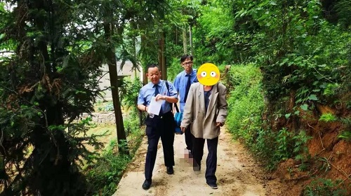 大儿子陈大(化名)在外打工,离异后,将4岁的孙子交由陈某某和妻子照看抚养,家中还有老母亲需要赡养,全家就靠妻子每月打工收入维持家庭开支,家庭生活非常拮据。自然成为办案组重点救助的对象,因此,办案组的实地考察更加深入细致,认真地了解该家庭的生产生活情况,去到陈某某家的山地查看耕种情况,还根据该地区实际情况提出了一些发展生产、改善生活的建议。