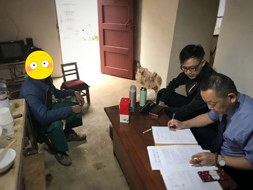工作组抵达盘州市刘官镇派出所时已是下午14时多。为了避免导航的偏差,抓紧时间顺利完成第一家救助对象的调查工作,紧急联系救助对象周某某,在其带领下驱车半小时的山路才到达小屯村委会,汽车已无法前行,徒步约两公里的小路终于到达周某某家。顾不得路途劳顿,紧锣密鼓地开展现场查看、拍照取证、询问笔录等工作。