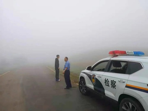 清晨从昭通市出发,驱车十多公里驶出高速公路,沿崎岖的乡道盘山而上,雾越来越大,气温骤降,打开防雾灯、应急灯,谨慎行驶一段路程,由于大雾弥漫,能见度只有3至5米,安全起见不得不停车等候,待雾气稍减,继续小心翼翼地在迷雾中穿行了30多公里山路,终于到达黑寨村委会,一打听,救助对象陈某某有急事外出。