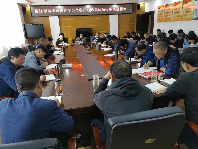 9月6日,丽江市司法局召开集中学习会,传达学习全省州(市)司法局长座谈会精神,市司法局党委书记、局长陈光军传达会议精神,并就学习贯彻及下半年司法行政工作进行安排部署。