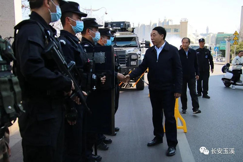 在玉溪市公安局巡特警和武警联合执勤点,马加能向执勤点的民警、辅警和武警官兵致以诚挚的问候,对他们在执勤中的辛勤付出表示高度赞扬和感谢,叮嘱大家要继续发扬特别能吃苦、特别能战斗、特别能奉献的优良作风,坚持依法执勤、文明执勤、热情服务,在坚守执勤一线的同时要注重自身安全,做好个人防护、自我保护,确保高质量完成好执勤各项任务。