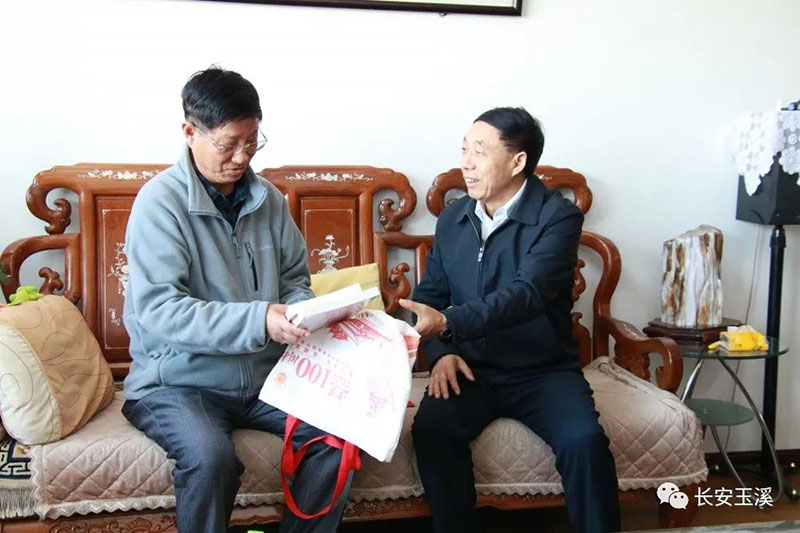 在慰问省委联系专家玉溪市人民医院常务副院长主任医师郝应禄、玉溪九洲生物有限公司总经理李景玉先生时,马加能向专家为玉溪发展作出的贡献表示感谢,并致以新春的祝福,希望专家发挥各自特长优势,更好地为玉溪社会经济发展贡献力量。