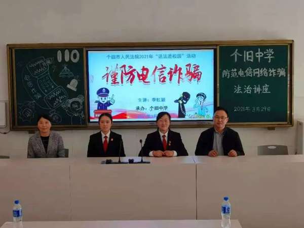 近三年来,个旧市人民法院少年庭派出法官助理1名担任个旧中学法治副校长,共到个旧各中小学进行了15场次的法治讲座,组织未成年人旁听庭审1次,受众人数五千余人,以法官视角关爱、帮助和引导学生身心健康发展。