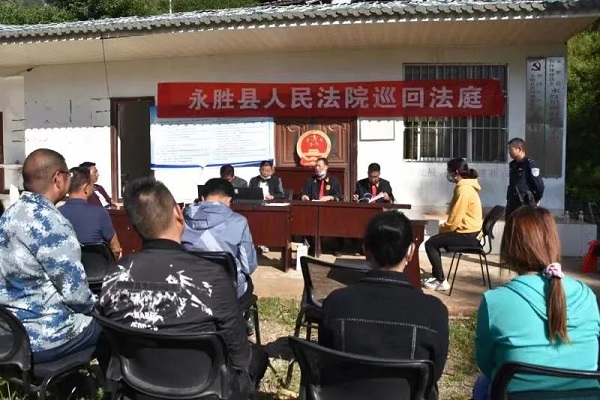 近日,丽江市永胜县三川法庭到松坪乡永红村委会沿所村小组,通过巡回法庭的方式,处理一桩离婚案件,对原被告双方进行调解离婚,妥善安置当事人子女抚养及财产分割问题,及时化解了一桩婚姻案件的矛盾。