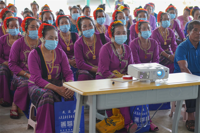 自“八五”普法开展以来,西双版纳州政法机关深化运用少数民族地区“五用工作法”,即用民族干部宣讲法治、用民族语言传播法治、用民族文字诠释法治、用民族节庆展示法治、用民族文化体现法治。持续活化普法形式,丰富普法载体。通过将法律条文翻译成傣语、哈尼语、布朗语等民族语言,以法律法规送到家、法律服务送上门的形式,面对面地向少数民族群众宣讲《中华人民共和国民法典》等与群众生活息息相关的法律内容,并结合身边的真实案例,将基层群众最关心的婚姻家庭、外出务工薪资拖欠、邻里纠纷等热点问题,用通俗易懂的语言向群众宣讲预防电信诈骗、养老诈骗、未成年人犯罪、故意伤害、毒品犯罪等法律知识,与群众零距离进行普法宣传。以少数民族节庆、节日活动为契机,用好用活民族文化元素,让普法宣传更“接地气”,普法效果更“入人心”,向人民群众提供更多生动、易懂、实用的优质法治“套餐”,获得广大基层群众的好评和赞誉。
