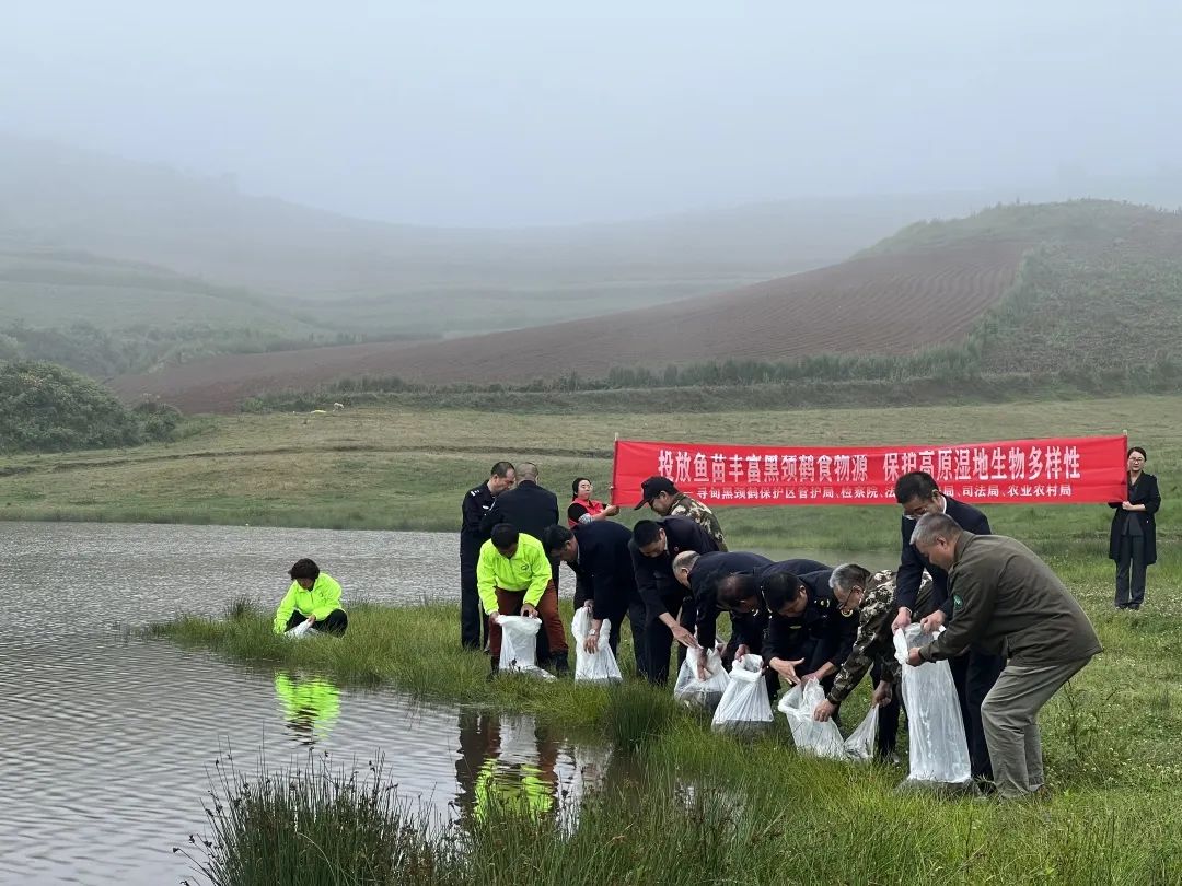 昆明市寻甸县是黑颈鹤东部种群的重要越冬地之一。近日,寻甸县人民检察院依托寻甸县黑颈鹤暨生物多样性保护法治工作站,联合寻甸黑颈鹤保护区管护局、县人民法院、县公安局、县司法局、县农业农村局开展“投放鱼苗丰富黑颈鹤食物源,保护高原湿地生物多样性”主题活动。