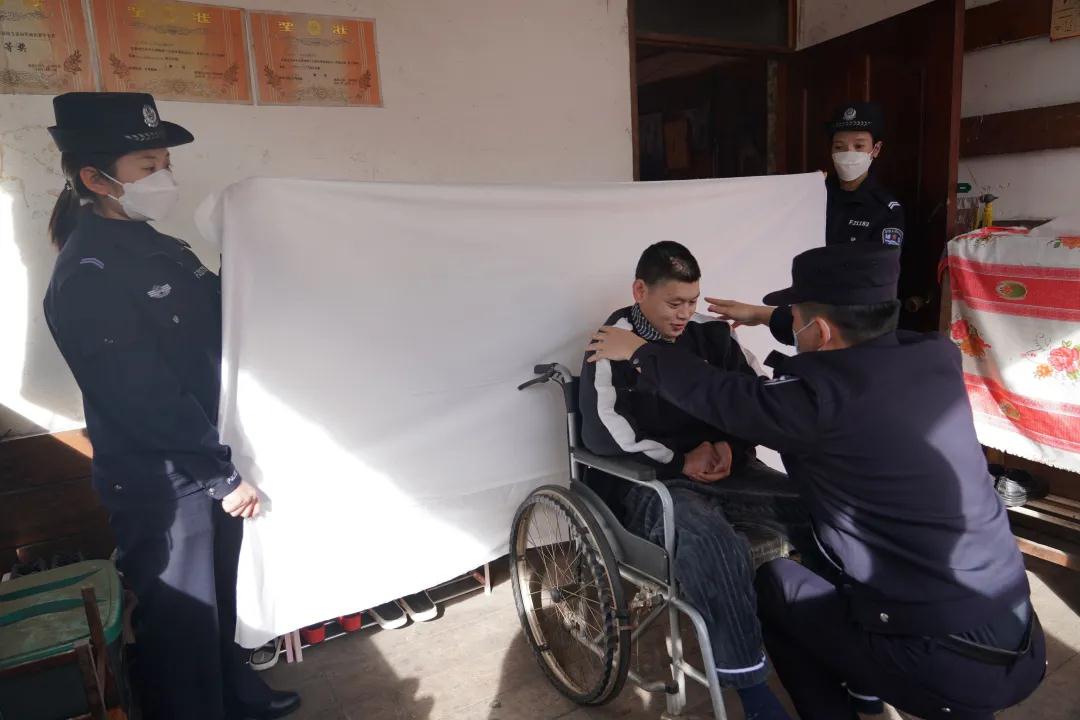 2021年8月民警在开展下乡走访时了解到,孔大哥的儿子因触电导致左腿截肢,行动不便,无法前往派出所办理相关业务。