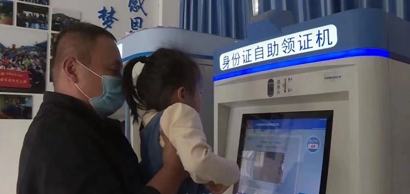 市民刘先生也带着女儿前来领取身份证,验证双手指纹、留下面部人像信息,小朋友很快就领取到了自己的身份证。