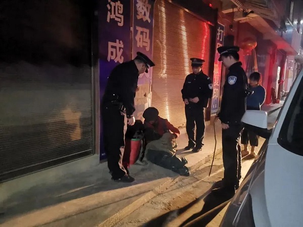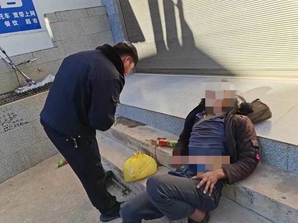 护送街头酒醉老人回家