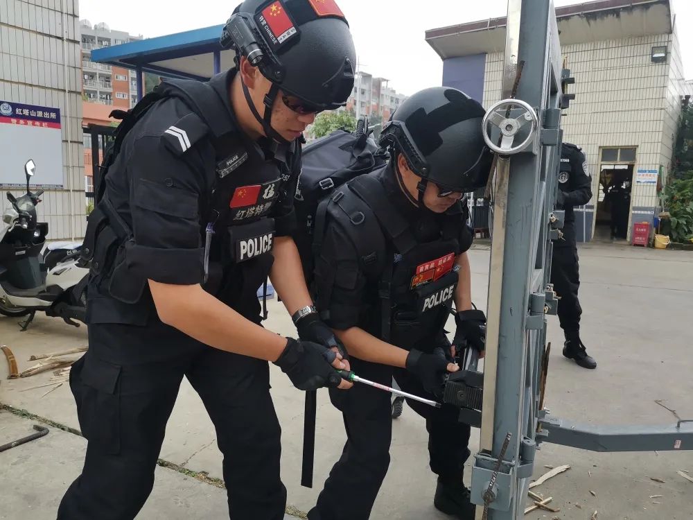 为确保抓捕工作顺利推进,红塔分局巡特警大队突击队员要负责“清障”工作,利用器械“破锁”,清除“拦路虎”。“破得了、进得去”,突击队员不单要掌握技术,还要尽可能多熟悉门、锁结构、特质、类型,遇到特殊疑难情况,及时分析研究,积累实战经验。训练中,队员们反复操作演练,相互交流心得、分享经验,共同提升。业余时间,有的队员还买来业务书籍钻研学习,给自己“加压充电”,确保处置当中,遇有锁门阻断情况,能够快速应用器材专业技术破门,确保处置警力顺利按时进入。