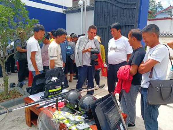 在进行参观和展示的同时,塔城派出所民警依据村民小组长们人熟、地熟、物熟的特点,适时将防范网络电信诈骗、打击整治养老诈骗专项行动、道路交通安全、缉枪治爆、禁毒、禁赌等的宣传贯穿活动过程,通过“宣传一人,带动一村小组”的理念,邀请村民小组长们积极参与到公安工作当中,警民携手共建、共治、共享社会治安平安。