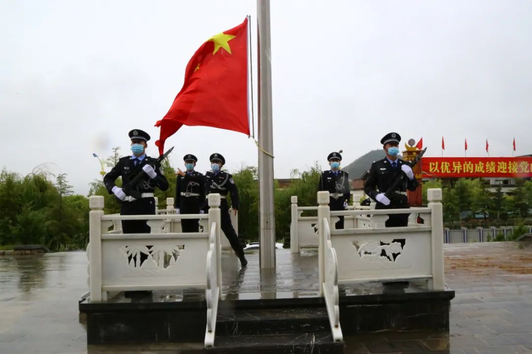 当天9时整,冒着淅沥的小雨,迪庆州公安局升国旗仪式正式开始,在指挥员“升国旗”的口令下,国旗护卫队员昂首挺胸、精神抖擞,迈着整齐铿锵的步伐走向升旗台,伴随着嘹亮的国歌声,五星红旗冉冉升起。
