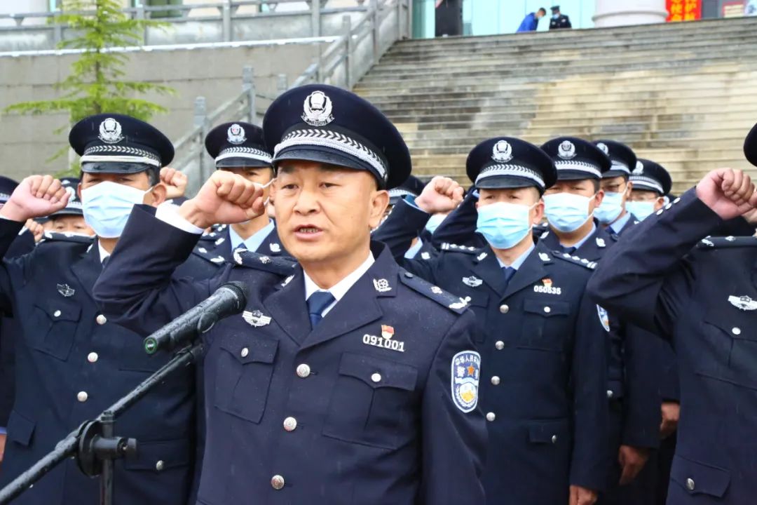 升旗仪式结束后,全体民辅警高举右拳,面对党旗重温入党誓词,字字铿锵有力,句句激励斗志,铮铮誓言表达了对党的无限忠诚和为党的事业奋斗献身的决心。