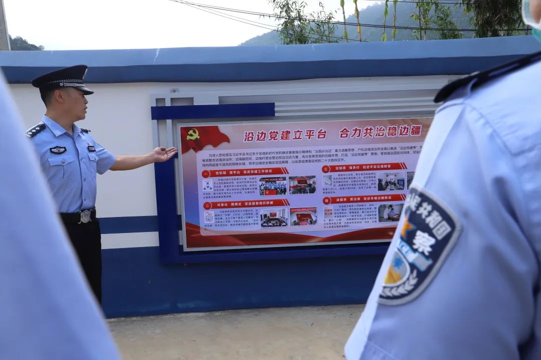 在团坡抵边警务室观摩了“三防”融合建设、联防联控机制运行及“沿边党建带”、抵边警务室、联防所、疫情防控卡点联防联控机制实操演练。