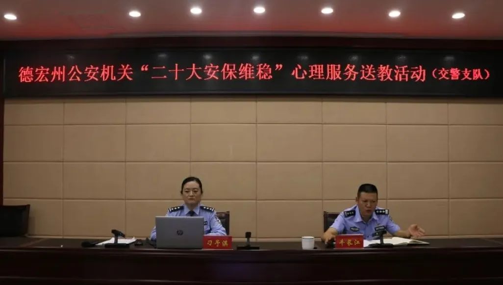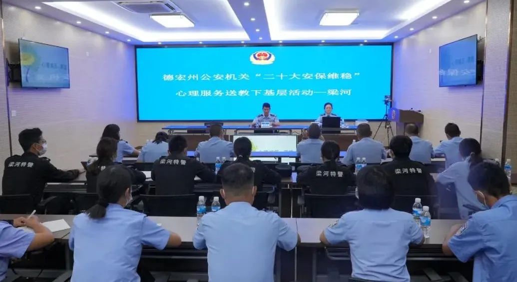 心理服务团队分别在梁河县公安局、盈江县公安局、州公安局交警支队开展送教活动。活动采取专题讲座的形式,以视频方式开至各乡镇派出所、高速大队,各送教点在家的局(支队)党委成员和民辅警代表参加讲座,全州共计350余人参加活动。