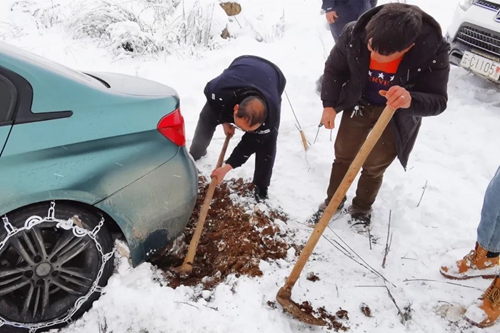 随后,唐某某多次尝试发动车子,车子却动弹不得、进退两难,始终无法摆脱险境后,随着时间的推移,他越加担心自己成为困守在山中雪路上的“山大王”。