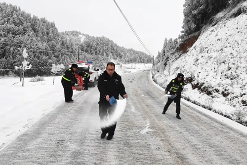 在最近的一个多月时间里,海拔3000米的莲峰镇时常雨雪冰凌天气,境内道路时常结冰积雪,被迫实行交通管制。对此,郝正德和同事们全员上岗、以雪为令,每天起早贪黑,全力抗冰保通,成为昼夜战风雪、斗严寒、保畅通、保安全的“雪警”,当地群众看在眼里、暖在心里。