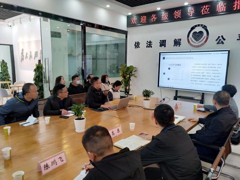 作为集社会治安综合治理中心、网格化综合监督指挥中心、信访接待中心、一站式矛盾纠纷调解“四位一体”的驿站,龙翔街道社会治安综合治理中心占地400平方米,按照“前接后处”“1+1+N”的模式设置功能分区,设有受理窗口和接待大厅、多功能室、调解室、研判室、心理咨询室、公共律师法律服务站等,功能区域满足多元化调处需求。其中,调解区分为一般纠纷调处区和联合调处区。一般纠纷调处区主要由龙翔司法所派驻人民调解员、驻所律师针对一般性纠纷进行调解,联合调处区主要针对相对复杂的、执法主体涉及多部门的矛盾纠纷进行调解。