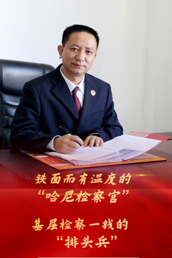 他是铁面而有温度的“哈尼检察官”,基层检察一线的“排头兵"。金平县人民检察院是他到基层任职的第一站,金平县边境线长达502公里,是集边疆、山区、民族、原战区为一体的深度贫困县,脱贫攻坚、强边固防任务繁重,群众工作难度大,但他始终将群众的事当自己的事,利用懂少数民族语言的优势主动帮助群众排忧解难,做实、做细扶贫、司法救助、民族团结进步示范创建等工作。