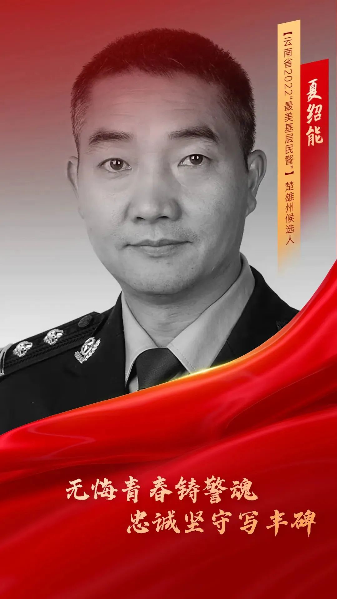 楚雄州公安局交警支队永武高速公路交巡警大队武定道路中队原中队长夏绍能于5月14日晚22时04分,在处理交通事故时因公牺牲,享年44岁……