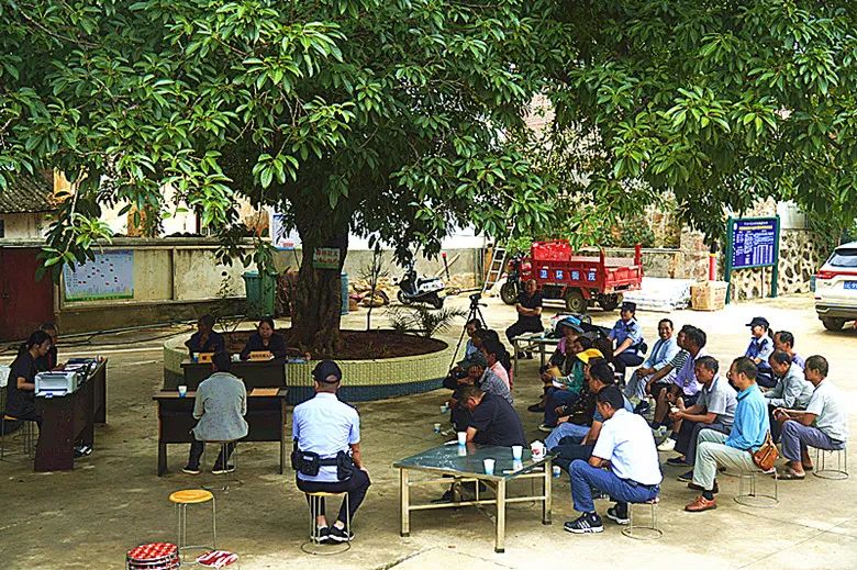 近日,楚雄州牟定县人民法院戌街人民法庭到戌街乡老纳村委会巡回开庭,审理因砍伐相邻的一棵桉树引发的财产损害赔偿纠纷案,通过法庭审理和调解,成功化解双方当事人多年的积怨。