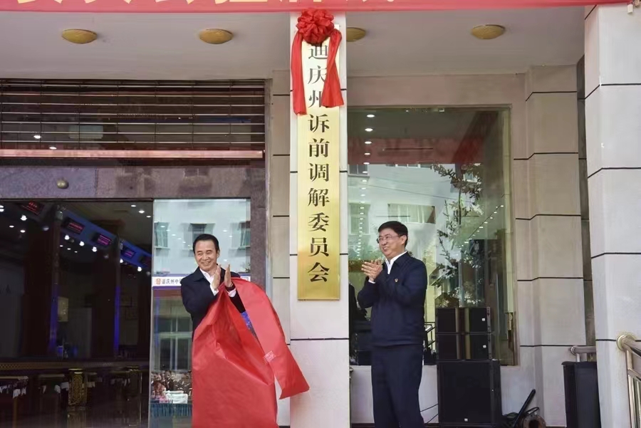 近日,迪庆州诉前调解委员会挂牌成立。州委副书记彭山,州委常委、政法委书记杨学文出席挂牌仪式。