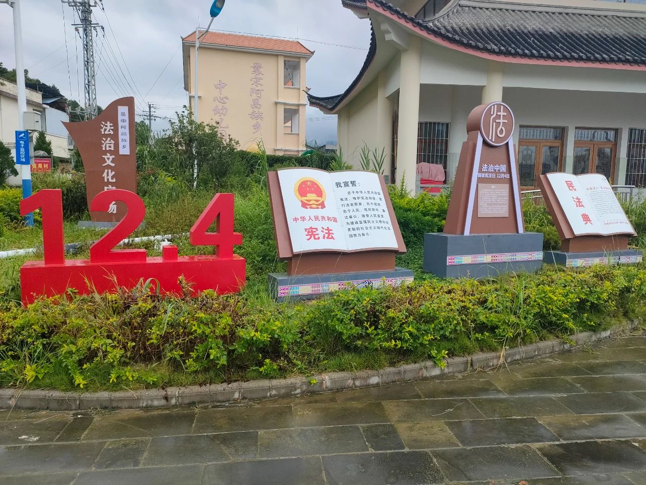 内容丰富。法治文化广场位于曩宋乡民族文化广场,占地约2554平方米,通过增设法治文化墙、法治标语、法治墙画、石碑石椅、法治文化宣传栏等普法设施,在广场上注入大量的法治文化元素,详细解读了宪法、民法典等知识,是辖区群众在茶余饭后、休闲娱乐中接受法治文化熏陶的好去处。