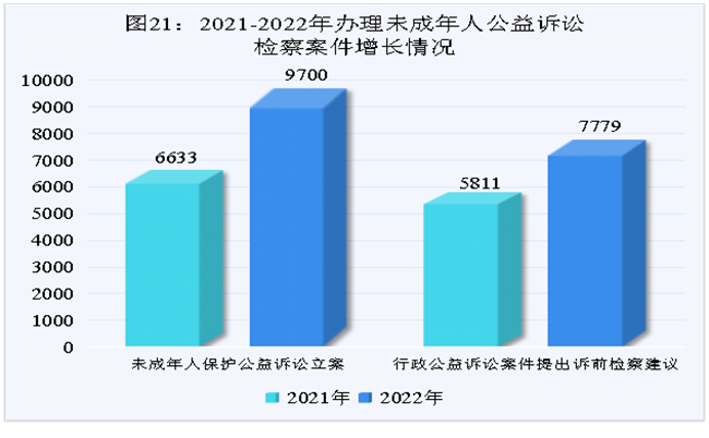 (1)立案情况。2022年,检察机关就未成年人保护公益诉讼共立案9700件,同比上升46.24%。