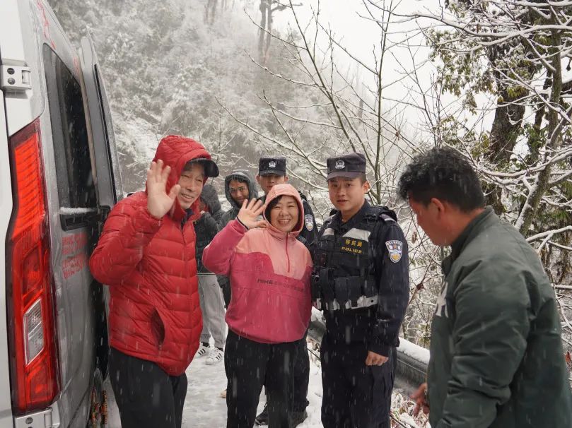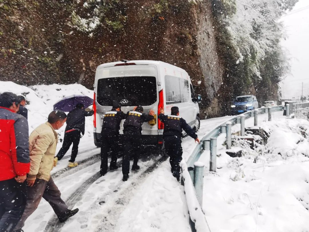 接警后,独龙江边境派出所联合独龙江交警中队第一时间组织警力携带救援装备、御寒衣服、压缩干粮驱车前往雪山救援保通。