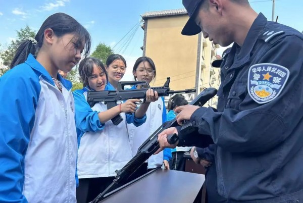 活动中,民警引导师生参观了强边固防主题宣传角,直观地了解了江城县“一城连三国”特殊的地理位置和边境线等情况。随后,民警现场向师生演示讲解了警械武器的用途和使用方法,并让部分同学亲自体验。在参观过程中,民警就禁毒防诈、反对校园霸凌、未成年人保护等法律法规展开宣讲,在寓教于乐中教育引导学生善用法律武器保护自身合法权益。
