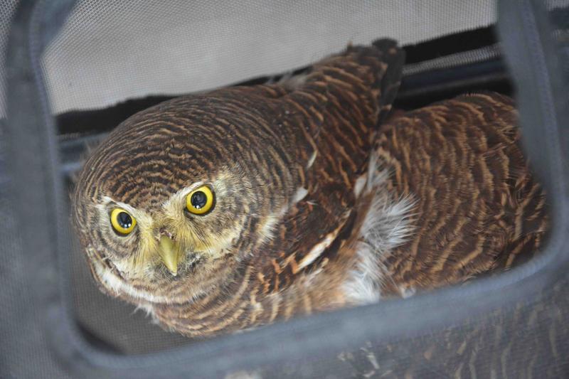 当天边的夕阳还剩最后一角时,楚雄州南华县红土坡森林派出所院内的树上传出了“咕咕”的叫声,抬头一看,一只国家二级保护动物领角鸮落在了树上。看着这只珍惜的野生动物,民警们早已见怪不怪。
