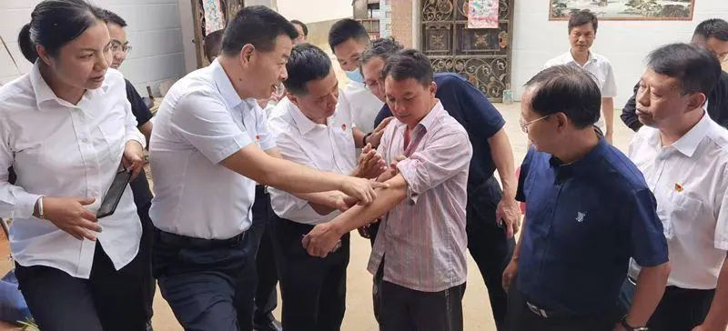 2022年中秋节前夕,云南省委政法委副书记、省见义勇为基金会常务理事吴朝武(左一)到红河哈尼族彝族自治州蒙自市看望慰问见义勇为英模刘强书,察看其伤势恢复情况