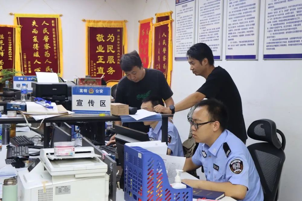 ▲中国移动嵩明分公司工作人员与嵩明县公安局反诈中心民警进行工作交流