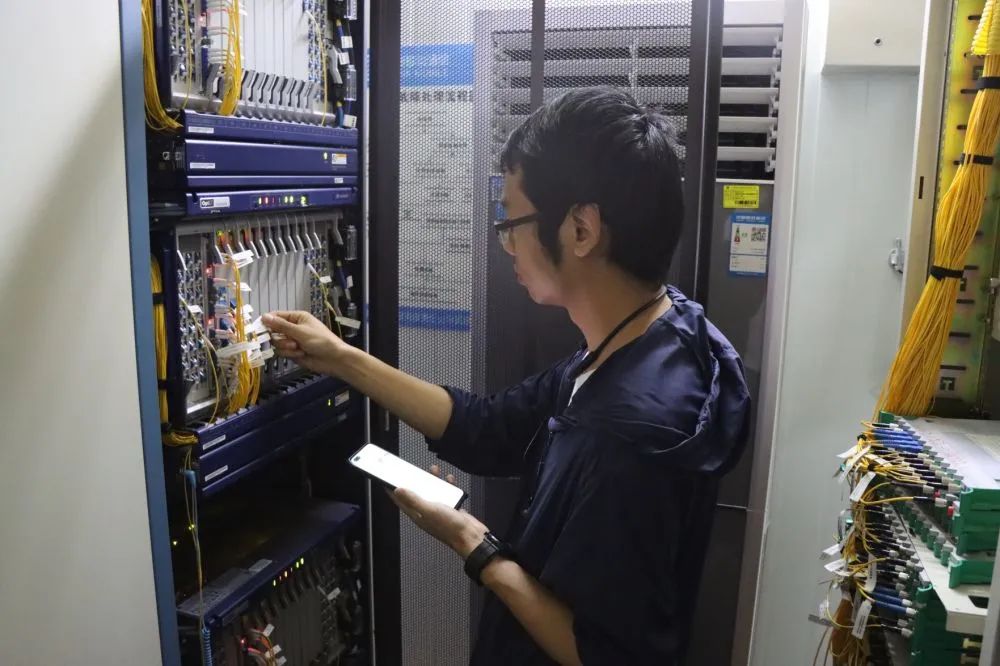 ▲中国移动嵩明分公司机房,工作人员正在检查设备