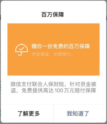 微信支付“百万保障”由财付通与中国人保财险PICC联合承保,用于保障用户的资金安全。只要用户在使用微信支付期间,发生微信支付账户被他人盗用而导致资金损失的情况,按损失金额承诺不限次赔付,每年累计赔付金额最高100万元的安全保障。