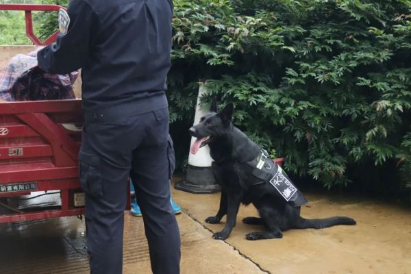 在此次夏夜治安巡查宣防工作部署中,“云烟”再一次展示出它超强的遂行作战能力。夜间巡逻警戒是“云烟”的拿手科目,手电筒和探照灯的光亮在这片偌大的边境密林中显得十分微弱,而“云烟”身穿一袭黑色“夜行衣”,加之其灵敏的嗅觉助力它成为黑夜里的“强光探照灯”,灯光照得到的地方民辅警负责,照不到的地方就由它负责。