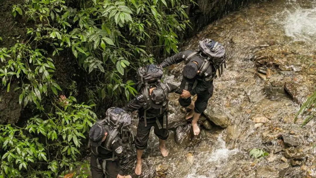 “雾太大了,大家拉紧绳子,不要走散。”九月的山林天气变幻莫测。巡逻路上,民警李普元所在的队伍遇上了雾雨天,一瞬间雾气弥漫山谷。山外阳光明媚,山中却下起了“小雨”。在能见度不到3米的林间,民警们拉起了救援绳。大伙用绳子串在一起,绳索牢牢固定在身上。只有这样,才能防止在巡山过程中走丢。每年,这样的突发情况他们不知要遇上多少次。“跌落箐底”“偶遇突袭的野猪”“毒蛇从脚边爬过”……每每想起这些,民警们都心有余悸。